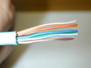 ケーブルをよくみると、橙、緑、青、茶の各ペア毎によじりの回数が違うはずです。 通信に使われる信号線は必ず一組でよじってある必要があります。 このあたりはノイズ対策とか、 通信距離の問題なのでこの通りになっていないと100Baseで通信できないとか、 長いケーブルでは10Baseでも何らかの問題が出ると思われます。 実際、100Baseで10m以上の長さのケーブルでこの組合せになっていないと、 ほとんどスピードが出ません。pingは通るけど、 FTPやHTTPのような大量のデータを扱う通信がほとんどできない事がありました。